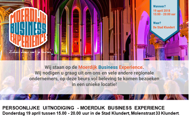 20.00 uur sluiten we de beurs, samen met de voorzitters van de andere Moerdijkse ondernemersverenigingen. Hierna start de netwerk ‘afterparty’ met sfeervolle live achtergrond muziek, waar u natuurlijk ook van harte voor bent uitgenodigd.