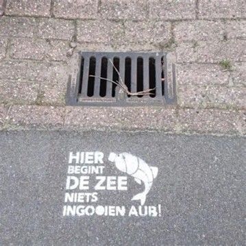 De boodschap ‘Hier begint de zee’ maakt deel uit van een landelijke campagne die duidelijk maakt: de strijd tegen plasticsoep begint niet pas op het strand, maar al bij de straatput. Alles wat daarin verdwijnt, stroomt via sloten, beken en rivieren rechtstreeks naar zee inclusief het afval.”